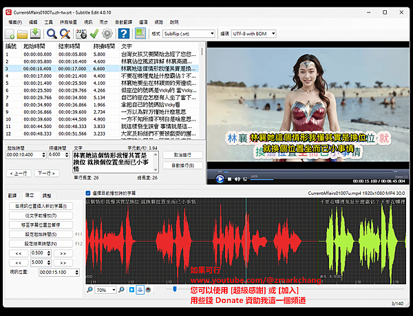 Subtitle Edit 內建的時間軸同步工具能夠精確地調整字幕的顯示時間,確保字幕與影片內容完美對齊。用戶可以根據影片的播放進度精確調整每條字幕的開始和結束時間,並使用批量調整功能提高工作效率。